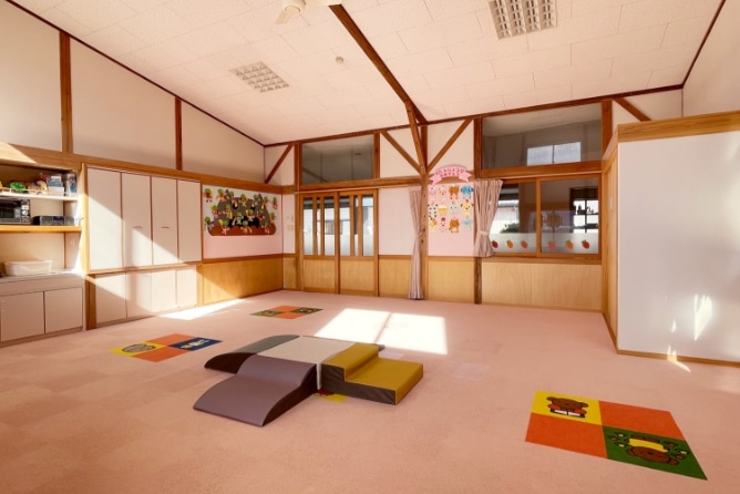 どの年齢の保育室も天井が高く開放的で、十分な広さを確保しているので、のびのびゆったりと過ごすことができます。