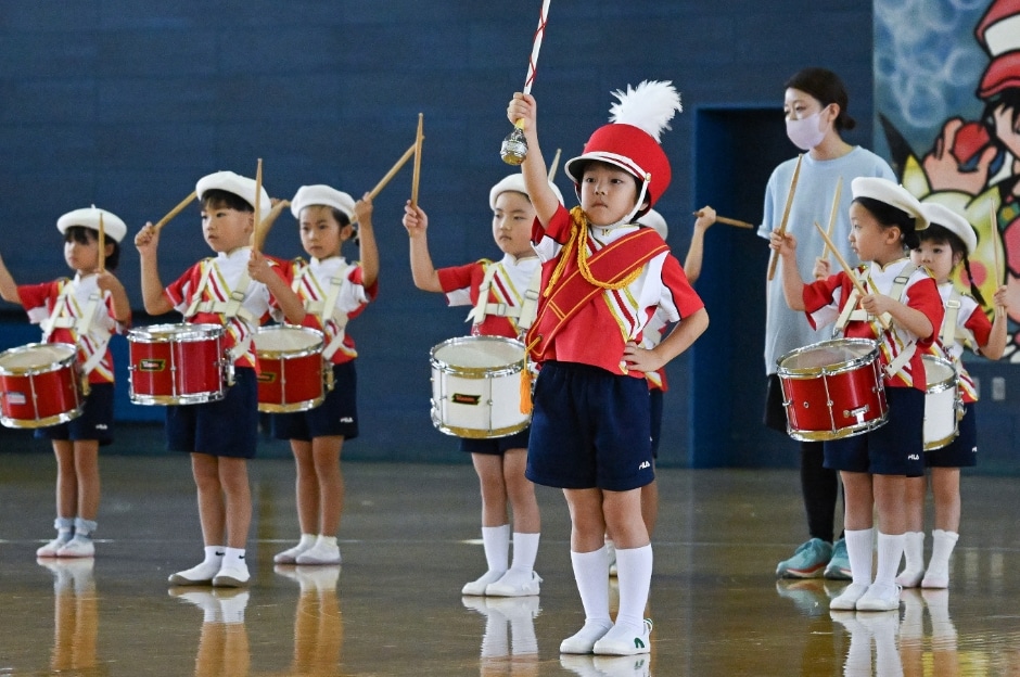 情操教育の一貫として、4才児より保育の中にメロディオンを、5才児には小・中・大の打楽器やキーボードの演奏を取り入れ、運動会・おゆうぎ会のオープニングに花を添えています。